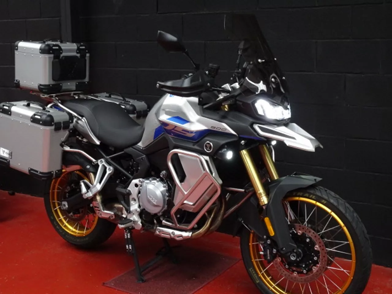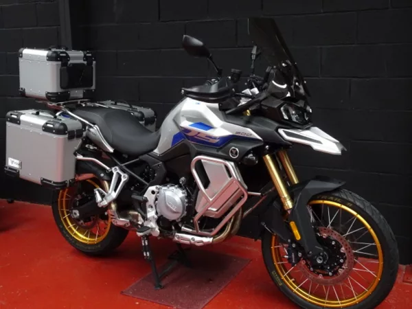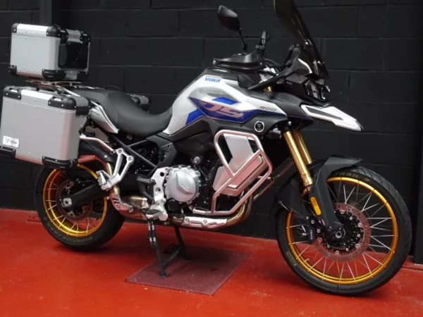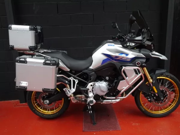 Equipada con set de 3 maletas originales Voge y cúpula alta, es una moto ideal para largos viajes desde el primer día.